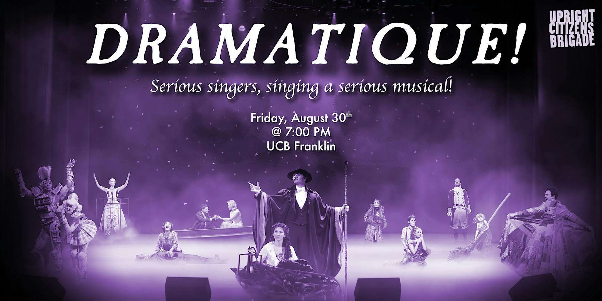Les Mis, Miss Saigon, Evita, Jesus Christ Superstar, Phantom of the Opera! All musicals with almost no dialogue, high drama, and one of them has Jesus in it. You’ve seen improvised musicals where the music stops and the improvisers get to take a breath and just talk, but now it’s time to make them work for it. For one whole show, once the music starts it won’t stop. And once the drama begins, it won’t end. High stakes, betrayal, lost love, hidden identities, people with masks on one side of their face. All of this you can expect in Dramatique!