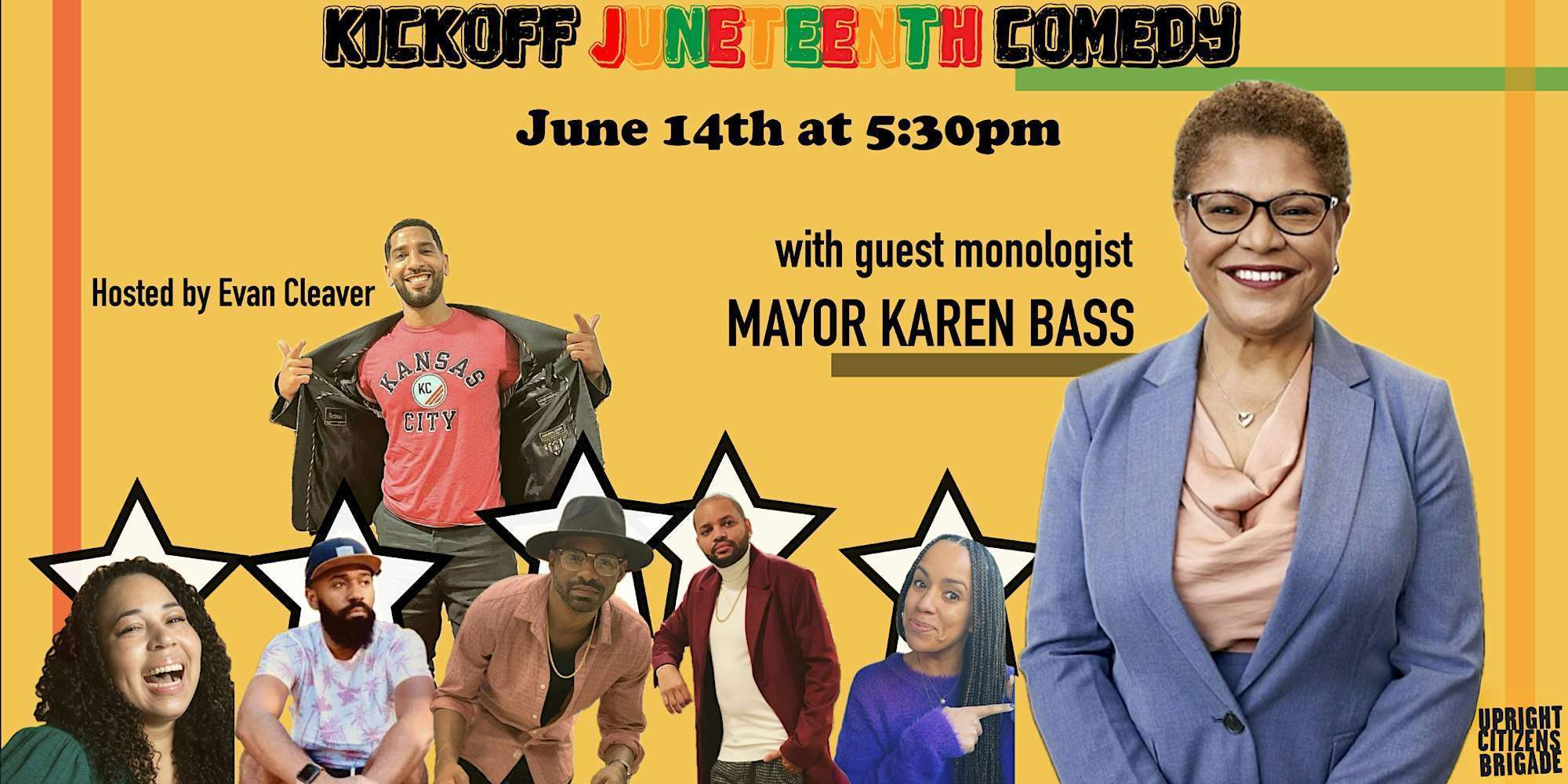 Start the teens of June with improv based off of Juneteenth stories from guest monologist, LA Mayor Karen Bass. Mayor Bass is the first woman to be mayor of Los Angeles and was instrumental in helping Juneteenth become a national holiday. Some of the best Black improvisers in LA will be doing improv about history, freedom, and the funny characters you meet at the cookout.