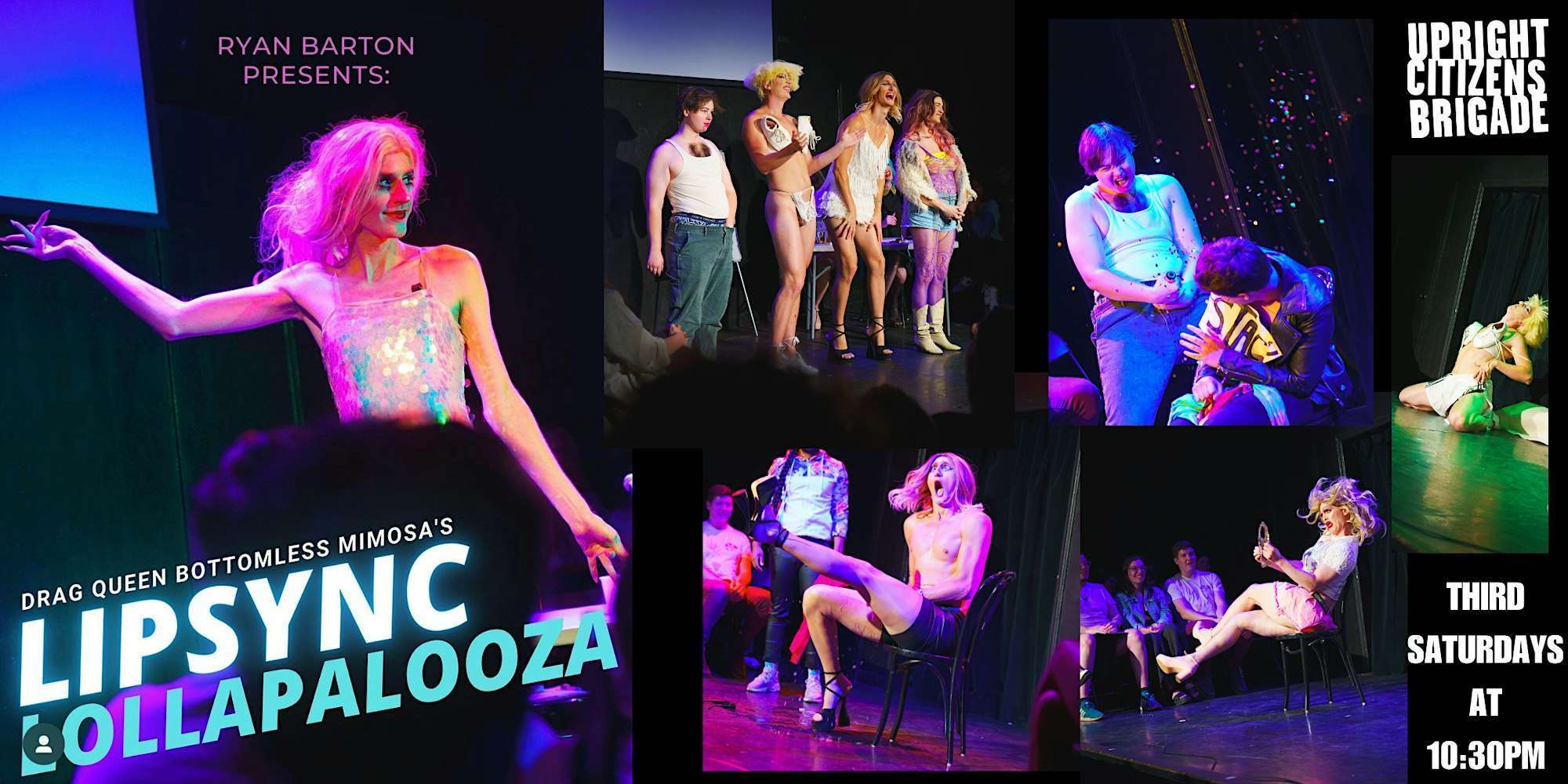 Drag Queen Bottomless Mimosa (Ryan Barton) challenges top talent from UCB, and performers from across LA to prepare an extravagant, high concept, outrageous lipsync based on a monthly theme. And in this fierce competition, YOU decide the winner! Glitz, glamour, glitter, and guts, you’ll need all four to get the highest score! Co-hosted by Leia Bia (James Jelin).