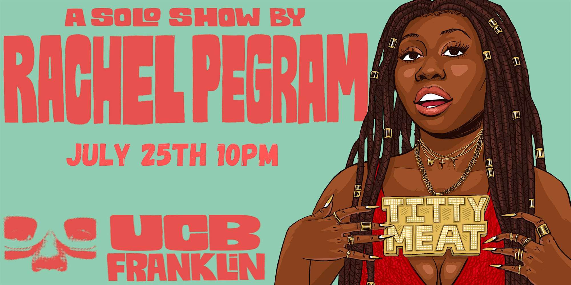 Titty Meat is a dynamic and fast paced solo show written and performed by the charismatic Rachel Pegram (NBC, Netflix). A fiery mix of stand up, storytelling and song comes together to unravel the guilt, shame, and sexualization of our bodies. It is a celebration of every part of us that was deemed “bad” by some b*llsh*t entity! Led by a certified scientist* (*comedian with a BFA in Theater) we will go on the journey to joyous self acceptance, but hit every single roadblock along the way. A hilarious and engaging show that you do NOT want to miss.The show is directed by UCB Royalty Corin Wells. With live piano played by Dane Halvorson.
